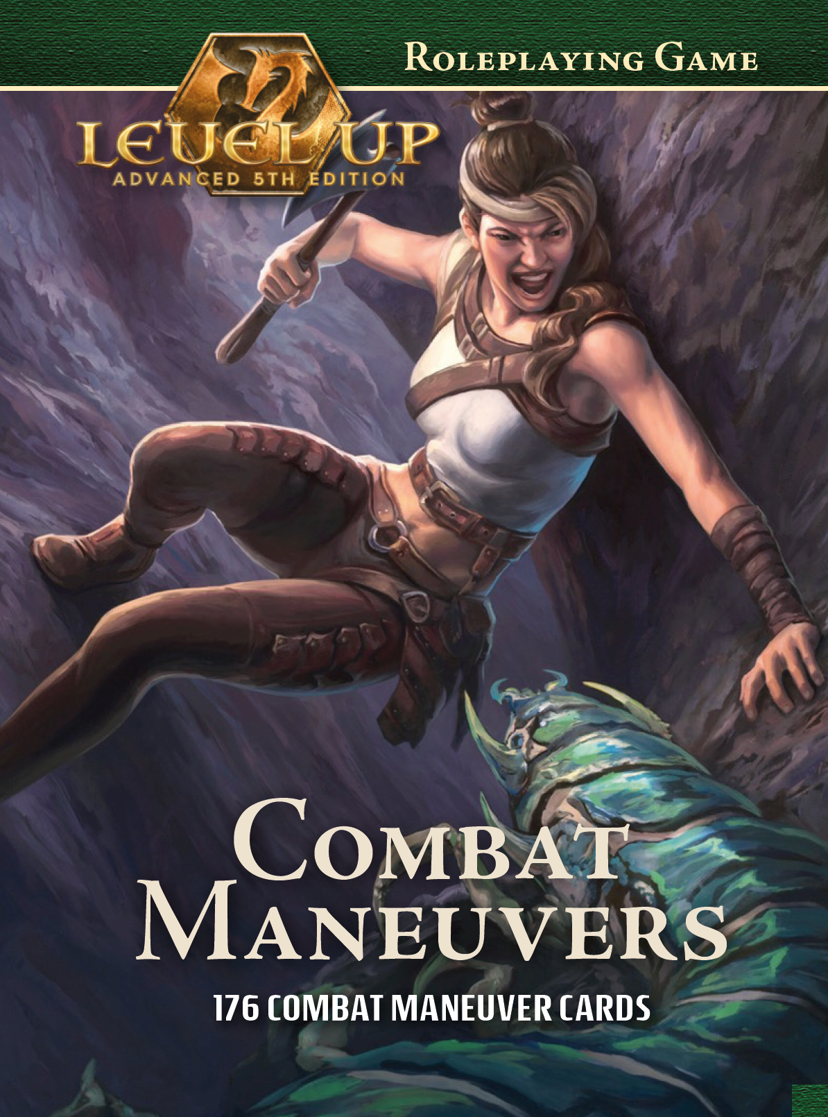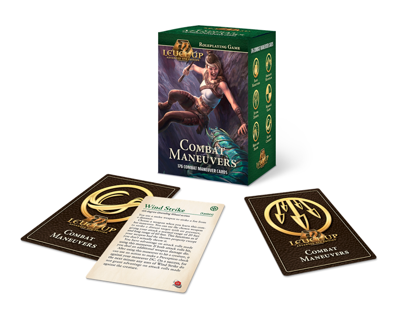 The Combat Maneuvers Card Deck will save you time, and give a visual reference of the combat maneuvers your character has learned in your Level Up 5E games.