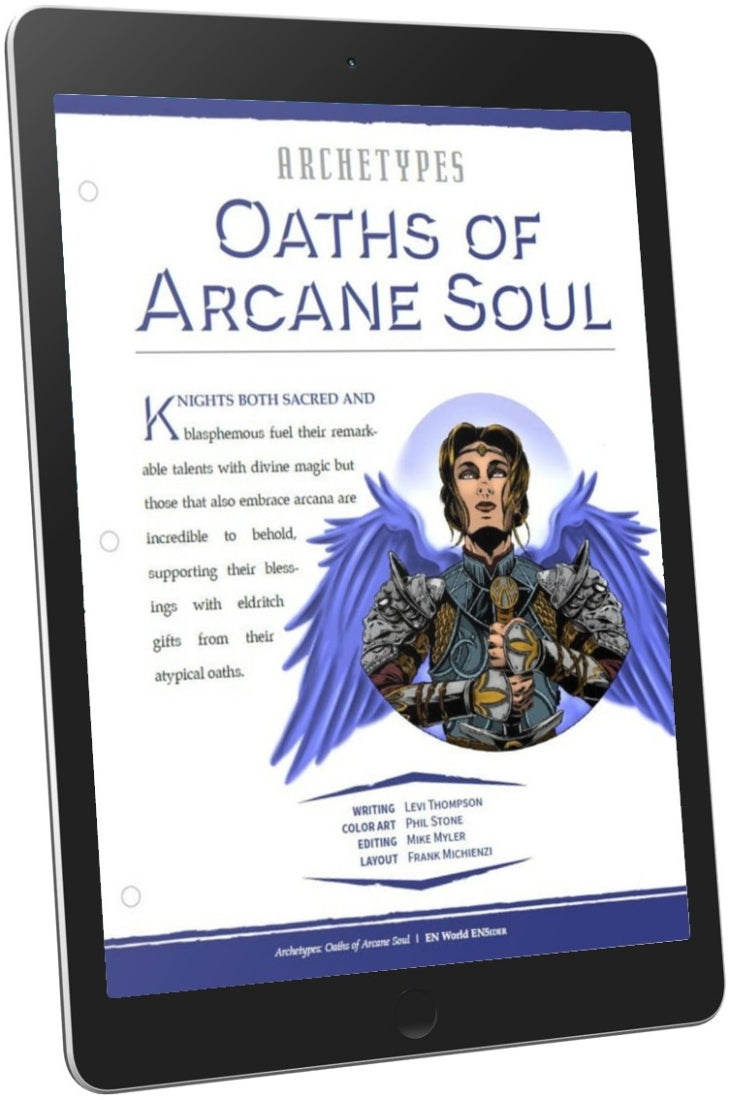 This article presents two new options for paladins: the oath of the arcane for servants of magic, and the oath of souls for psychopomps dedicated to ensuring the integrity of the mortal veil. The former employ powerful arcana and mimic the enchanted feats of the mages they are sworn to protect, and the latter are peerless among slayers of undead. Dedicatedly designed by Levi Thompson, illustrated by Phil Stone.