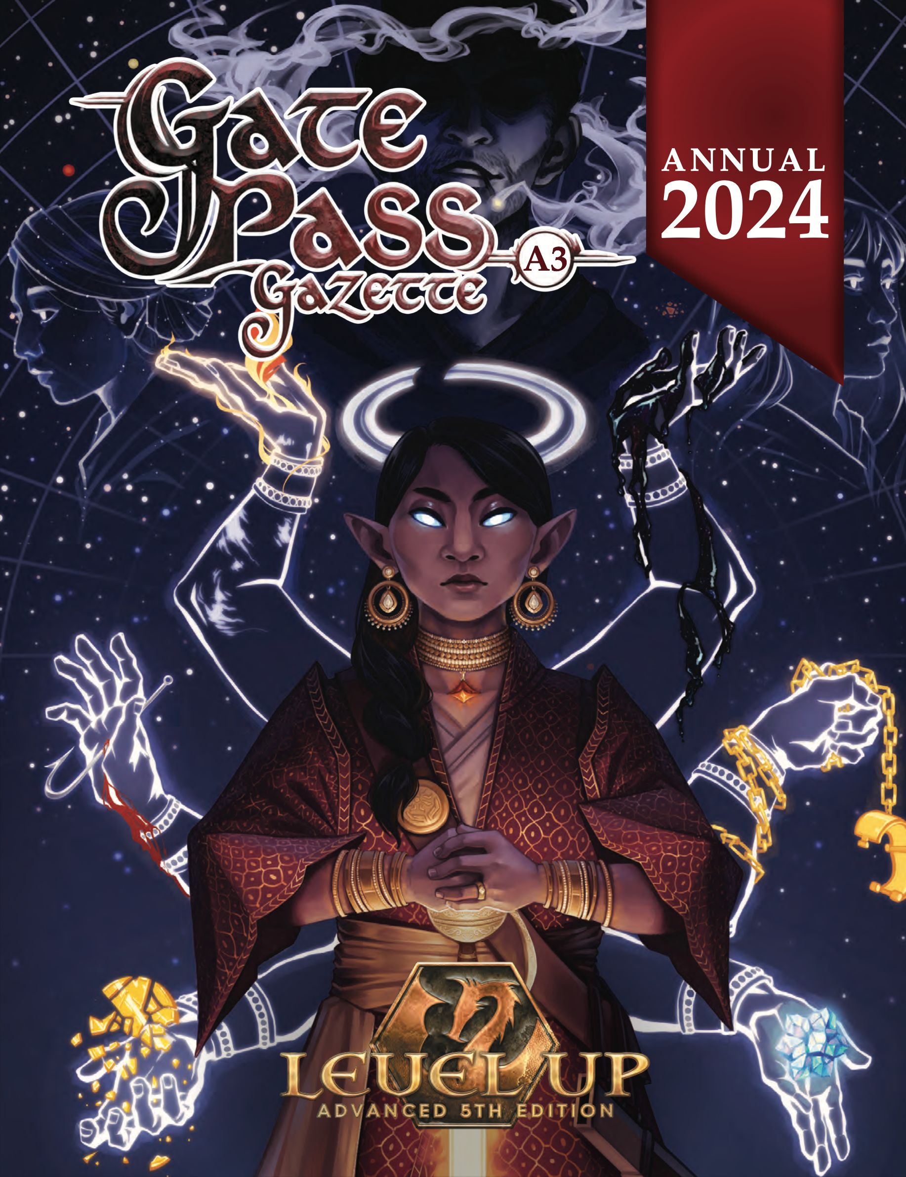 A 250-page hardcover compilation of archetypes, feats, spells, heritages, monsters, and more for Level Up: Advanced 5th Edition!